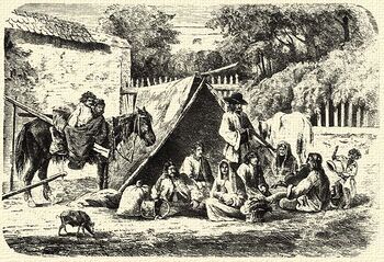 A painting by Vincent van Gogh depicting a caravan of nomadic Romani