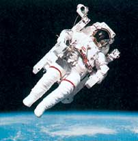 بدلة فضائية لرائد فضاء توفر نظامًا يساعد على العيش خارج المركبة الفضائية. وتمكن العلبة الخلفية المدفوعة بالغاز رائد الفضاء من الحركة حول المركبة الفضائية لفترة تصل إلى ست ساعات. تأمين المتطلبات الأساسية في الفضاء. تجهز مركبة الفضاء المأهولة بأنظمة المساعدة على الحياة والمصممة كي تؤمن متطلبات جسم رائد الفضاء. فهناك أنظمة محمولة مساعدة على الحياة يمكن حملها في علبة خلفية تمكن رائد الفضاء من العمل خارج مركبته.