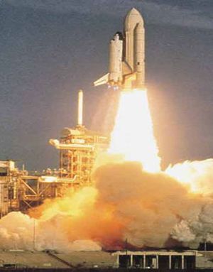 مسافات شاسعة تفصل الأرض عن القمر والكواكب السيارة والنجوم. تظهر هذه الأجسام في الشكل التوضيحي على اليسار أكثر قربًا إلى الأرض مما هي في الواقع. فلو رسمنا الشكل بأخذ 1 سم لكل 1000كم، لكان ينبغي أن تكون صورة بلوتو على بعد 102كم من صورة الأرض. وتختلف طريقة إطلاق مكوك الفضاء قليلاً عن باقي المركبات الفضائية. فلمكوك الفضاء معززات صلبة الداسر، بالإضافة إلى محركات الصاروخ الرئيسية التي تحرق الداسر السائل. وتعطي المعززات والمحركات الرئيسية القوة الدافعة اللازمة لانطلاق الصاروخ من منصة الإطلاق. وبعد مرور دقيقتين أو أكثر، تنفصل المعززات من المكوك وتعود للأرض بوساطة مظلة. وتستمر المحركات الرئيسية في الاشتعال حتى يصل المكوك إلى سرعته المدارية. وتساعد محركات صغيرة أخرى المكوك على الوصول إلى سرعته المدارية.