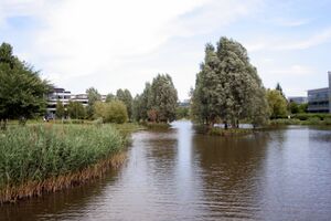 Global pharmaceutical giant, Bayer Life Sciences relocated to Reading's Green Park Business Park in 2016.[12] Reading has a significant historical involvement in the information technology industry, largely as a result of the early presence in the town of sites of International Computers Limited[13] and Digital Equipment Corporation.[14] Other technology companies with a significant presence in the town include Huawei Technologies, Pegasystems, Access IS, CGI Inc, Agilent Technologies,[15] Cisco,[16] Ericsson,[17] Symantec,[16] Verizon Business,[18] and Commvault.[19] These companies are distributed around Reading or just outside the borough boundary, some in business parks including Thames Valley Park in nearby Earley, Green Park Business Park and Arlington Business Park.