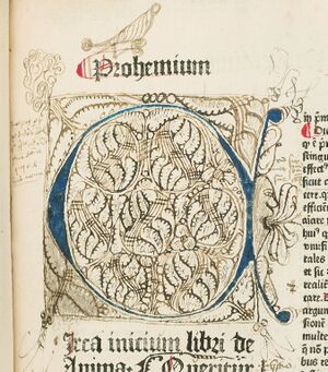 Unlike later techniques, woodcut uses relief printing just as metal moveable type does, so that pages including both text and illustration can be set up and printed together. However the technique either gives rather crude results or was expensive if a high-quality block-cutter was used, and could only manage fine detail on atypically large pages. It was not suitable for the level of detail required for maps, for example, and the 1477 Bolognese edition of Ptolemy's Cosmographia was both the first book to contain printed maps and the first to be illustrated by engravings (by Taddeo Crivelli) rather than woodcuts.[4] However hardly any further engraved illustrations were produced for several decades after about 1490, and instead a style of expensive books decorated in metalcut, mostly religious and produced in Paris, was a popular luxury product between about 1480 and 1540.[3] In the middle of the 16th century woodcut was gradually overtaken by the intaglio printing techniques of engraving and etching which became dominant by about 1560–1590, first in Antwerp, then Germany, Switzerland and Italy, the important publishing centres.[3] [5] They remained so until the later 19th century. They required the illustrations to be printed separately, on a different type of printing press, so encouraging illustrations that took a whole page, which became the norm.