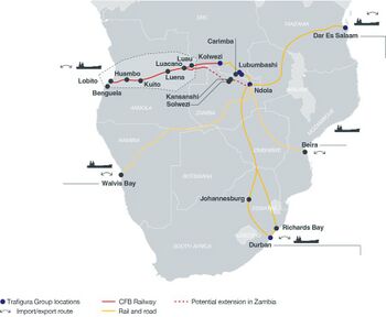 في 14 يوليو 2023، اشتدت المنافسة للوصول للمعادن الهامة المستخدمة في تصنيع بطاريات السيارات الكهربائية مع الإعلان عن أن ترافيگورا، وهي شركة تجارية ضخمة مقرها سنغافورة، ستقود تجمعاً من الشركات الأوروبية لإعادة بناء خط سكة حديد من المرجح أن يصبح أحد أهم الممرات اللوجستية في أفريقيا.[30]