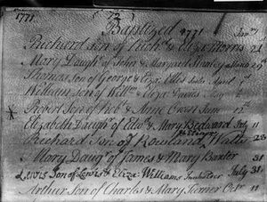 سجل تعميد روبرت أوِن في سجل أبرشية نيوتاون.