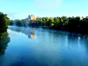 The 19th Ward is a southwest neighborhood bordered by Genesee Street, West Avenue, and the Erie Canal, and is across the river from the University of Rochester. The neighborhood is one of the largest in Rochester.[64][65] Now known by its slogan "Urban by Choice",[66] in the early 19th century, the area was known as Castle Town, after Castle Inn, a tavern run by Colonel Isaac Castle. By the early 1820s, however, the area was overshadowed by developments in the north that would become downtown Rochester. Due to a tumultuous bend in the Genesee, the area was home to skilled boatsmen who assisted boats traveling north to Rochester and the area was consequently known during this time as "The Rapids".[67] In the 1890s, as Rochester expanded, the area rapidly urbanized. By 1930, it was a booming residential area for doctors, lawyers, and other skilled workers. Homes in the originally upper-class neighborhood typically have gumwood trim, leaded glass, fireplaces, hardwood floors, and open porches. In the 1960s, property values fell as the population of Rochester did, the area experienced white flight accelerated by school busing, blockbusting, and race riots downtown, and crime increased, with violence, drug use, and neglected property further diminishing property values.[68][صفحة مطلوبة] In recent years, neighborhood revitalization has come from the "Brooks Landing" development along the Genesee River.[69] Gentrification has occurred in the 19th Ward and adjacent Plymouth-Exchange area from the conversion of housing stock to student housing for the University of Rochester.[70] Located in the 19th Ward are the Arvine Heights Historic District, Chili–West Historic District, Inglewood and Thurston Historic District, and Sibley–Elmdorf Historic District, listed on the National Register of Historic Places.[71][72][73]