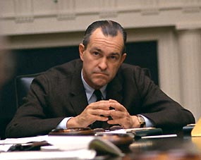 [W]e gathered for a sherry in the family living room on the second floor of the White House. If the President, who normally kept to a tight schedule, was a few minutes late, he would literally bound into the room, pause long enough to acknowledge our presence, and herd us into the family dining room, overlooking Pennsylvania Avenue. Seating followed protocol, with the secretary of state (Dean Rusk) at the President's right, and the secretary of defense (Robert McNamara, later Clark Clifford) at his left. General Bus Wheeler (the Chairman of the Joint Chiefs of Staff) sat beside the secretary of defense. I sat beside Dean Rusk. Walt Rostow (the Special Assistant for National Security Affairs), George Christian (the White House Press Secretary), and Tom Johnson (the deputy press secretary) made up the rest of the table.[105]