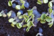 Basil sprouts. The gel is the dissolving seed coat.