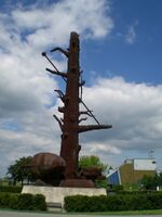 Riesa has a 25 m tall, 234 tonne, cast-iron (GGG 40) sculpture of an oak trunk, named Elbquelle, which means source of the Elbe, by Jörg Immendorff, erected in 1999. Local folk call the sculpture by many other names, most notably "Rostige Eiche", which means "Rusty Oak".