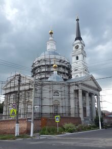 The town does not retain many marks of antiquity. Its oldest buildings are three churches of the monastery of St. Nicholas, all erected in the mid-18th century. Some of the most prominent buildings in the town were commissioned by the Shelikhov merchants who traded with Alaska Natives in North America in the late 18th century, the most famous of whom, Grigory Shelekhov, was born in the town. A monument was erected to his memory on the central square. أهم كنائس البلدة هي كاتدرائية أوسپنسكي (1811) and the Pokrovsky Cathedral (1822), both designed in a vernacular Neoclassical idiom and furnished with very lofty belltowers.