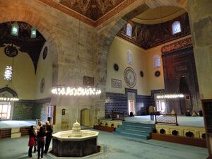 In the rest of the Islamic world, similar Sufi institutions usually went by other names such as a khanqah, takya (or takiyya in Arabic, tekke in Turkish), or dargah (shrine), though these terms sometimes had more specific meanings.[4][6][5][18] In the early Ottoman Empire, the cognate term zaviye usually designated a multi-purpose religious complex that catered to Sufis and served as a place of worship.[19][4] Many important early Ottoman mosques such as the Green Mosque in Bursa, built in the early 15th century, are examples of this type.[19]