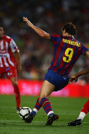 Ibrahimović playing for Barcelona against Sporting Gijon.