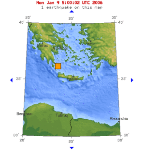 يوم الأحد 8 يناير 2006 ضرب زلزال قوي جنوب اليونان، و ذلك بتوقيت 11:34:52 (UTC)، بقوة مقدارها 6.7 على مقياس ريختر. تم تقدير العمق بما يقارب 38 كيلومتر.