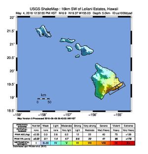- ^ "M 6.9 – 16km SW of Leilani Estates, Hawaii". United States Geological Survey. Retrieved 4 مايو 2018.