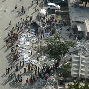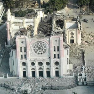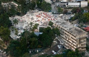 زلزال هايتي كان هزة أرضية بلغت قوتها 7.0 درجة على مقياس ريختر، وكان مركزها يبعد نحو 10 أميال (17 كيلومتر) جنوب غربي العاصمة الهايتية بورتو برنس. وقع الزلزال في يوم الثلاثاء 12 يناير 2010 في تمام 16:53:09 بالتوقيت المحلي (21:53:09 بالتوقيت العالمي الموحد[4]). وقع الزلزال على عمق 6.2 ميل (10.0 كم). وقد سجلت هيئة المسح الجيولوجي الأمريكية (USGS) سلسلة من الهزات الإرتدادية عشر منها زادت قوتها عن 5.0 درجة بينها واحدة بقوة 5.9 وأخرى بقوة 5.5.[5] الزلزال الذي استمر لما يزيد عن دقيقة واحدة خلف دمارا هائلا في حين أظهرت مشاهد تلفزيونية بثتها شبكة سي إن إن التقطت عقب الزلزال مباشرة سحب كثيفة من الغبار ارتفعت من مدينة بورتو برنس ناتجة عن انهيار المباني جراء الزلزال.[6] قدر الصليب الأحمر الدولي أعداد المتأثرين بالزلزال بثلاثة ملايين شخص بين قتيل وجريح ومفقود،[7] فيما أعلن وزير الداخلية الهايتي عن اعتقاده عن مقتل 200.000 شخص جراء الكارثة،[3] متخطية تقديرات سابقة للصليب الأحمر قدرت أعداد القتلى بين 45،000 إلى 50،000. وقد قتلت شخصيات عامة بارزة عديدة جراء الزلزال، فيما أعلنت الحكومة الهايتية في 18 يناير عن دفن أكثر من 70.000 قتيل في مقابر جماعية.[8] معظم معالم مدينة بور أو برنس انهارت أو تضررت بشدة جراء الزلزال بينها القصر الرئاسي، مبنى الجمعية الوطنية (البرلمان)، كاتدرائية بور أو برنس، كذلك انهار السجن الرئيسي ومستشفى واحد على الأقل.[9][10][11] كما أعلنت الأمم المتحدة أن مقر قيادة قوات حفظ السلام الدولية في هاييتي والموجودة في هذا البلد منذ 2004، قد لحقت به أضرار كبيرة فيما لايزال عدد من موظفي الأمم المتحدة مفقودين.[12] خلفيةهايتي بلد فقير ، يقع تصنيفه في المرتبة 149 في مؤشر التنمية البشرية (182 بلدا). .[13] هناك قلق حول خدمات الطوارئ 'القادرة على التعامل مع كارثة كبرى,[14] وتعتبر بلاده "الضعيفة اقتصاديا" من قبل منظمة الأغذية والزراعة.[15] في المرة الأخيرة حدث زلزال بهذه الضخامة كان قد ضرب جنوب هيسبانيولا كان في 1751.[16][17][18] MSNBC.com و ان بي سي نيوز ذكرت هيئة المسح الجيولوجي الجيوفيزيائي كريستين مارانو بأنه أقوى زلزال منذ عام 1770 في ما يعرف الآن هايتي. في عام 1946 ، لزلزال بلغت قوته 8.0 ضرب جمهورية الدومينيكان وأيضا هز هايتي وأحدث تسونامي الذى قتل فيه 1،790 شخص.[19] تقييم مخاطر الزلزال قد أنجزت في عام 2006 وأشارت إلى أن لسان الحمل إنريكييو - نظام الخطأ يمكن أن يكون في نهاية دورة زلزالية وتوقعت أسوأ حالة لزلزال بلغت قوته 7.2 ويماثل في حجمه زلزال جامايكا 1692.[20] بول مان ، »وآخرون« قدموا تقييما للمخاطر في شرخ إنريكييو - حديقة سان الحمل الثامن عشر الكاريبي في المؤتمر الجيولوجي في مارس 2008 ، مشيرا الى ان موجة جديدة (ما يعادل الإجمالي إلى زلزال بقوة 7.2 ميغاواط ) ، وأوصى الفريق بتقييم الدراسات الجيولوجية "عالية الأولوية "القطيعة التاريخية ، كما كان الشرخ تماما وسجل بعض الهزات الأرضية في السنوات الأربعون السابقة.[18] وكان مقال قد نشر في هايتي في الصحيفة (هايتي)لوماتان في أيلول / سبتمبر من عام 2008 أشار الى تعليقات عن طريق الجيولوجي باتريك تشارلز أن هناك مخاطر عالية عن النشاط الزلزالي الرئيسي في بورت أو برنس .[21] الخسائراثر وقوع الزلزال سادت حالة من الهلع والفوضى سكان العاصمة الهايتية، حيث تجمع الآلاف في الشوارع خشية انهيار منازلهم، فيما حل الظلام الدامس على المدينة اثر انقطاع التيار الكهربائي. وفي 13 يناير قدر رئيس وزراء هايتي جان ماكس بيلريف في تصريحات صحفية أن تتجاوز حصيلة ضحايا الزلزال 100 ألف قتيل، فيما أعرب الرئيس رينيه بريفال عن اعتقاده بمصرع الآلاف من مواطنيه جراء الزلزال العنيف، مضيفا «المشهد في العاصمة بورت أو برنس لا يمكن تخيله فالبرلمان انهار ومصلحة الضرائب انهارت والمدارس انهارت والمستشفيات انهارت.»[22] عقب الزلزال بيومين أعلنت الأمم المتحدة أن 200 شخص قد فقدوا تحت أنقاض مقر قيادة القوات الدولية التابعة للأمم المتحدة في هاييتي وأن رئيس البعثة التونسي هادي عناب