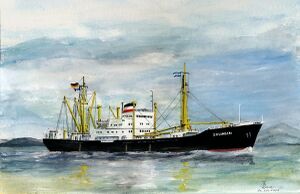 In May 1955, the city of Solingen took over the partnership of the German general cargo ship Solingen of the Hamburg-American Packet Transit Actien-Gesellschaft (Hapag).