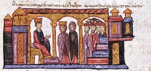 Zoe governed with the support of imperial bureaucrats and the influential general Leo Phokas the Elder, who was her favorite.[7] Zoe's first order of business was to revoke the concessions to Simeon I of Bulgaria, including the recognition of his imperial title and the arranged marriage between his daughter and Constantine VII. This renewed the war with Bulgaria, which began badly for the Byzantines who were distracted by military operations in Southern Italy and on the eastern frontier. In 915 Zoe's troops defeated an Arab invasion of Armenia, and made peace with the Arabs.[5] This freed her hands to organize a major expedition against the Bulgarians, who had raided deep into Byzantine Thrace and captured Adrianople. The campaign was planned on a grand scale and intended the bribing and transportation of Pechenegs into Bulgaria by the imperial fleet from the north.
