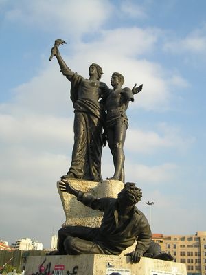 في عام 1916، أعدم جمال باشا، الذي عرف بالسفاح، 14 وطنيا لبنانيا في الساحة اثر خسارة الدولة العثمانية الحرب العالمية الأولى متهما إياهم بمساعدة الأعداء. وحين دخل الفرنسيين إلى بيروت، أنشئوا قوسا ليخلدوا ذكرى الشهداء. وامر الجنرال غورو بتسمية المكان "ساحة الشهداء". ثم بنوا نصبا قام به النحات يوسف الحويك من الصخر اللبناني يمثل أمراءة مسلمة وأخرى مسيحية يندبان على قبر. لكن تم هدمه أبان الاستقلال، لما اعتبره اللبنانيون رمزا للخنوع والذل.