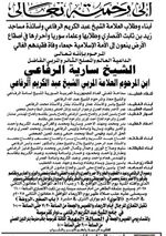 - خطبة للشيخ سارية الرفاعي من دمشق يبين إجرام الجيش السوري لنظام الرئيس الأسد