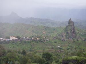 The tallest summit is Pico de Antónia, elevation 1،392 m (4،567 ft),[1] barely west of Picos, in the centre of the island. The second is Serra Malagueta between Assomada and Tarrafal in the north. Other mountain ranges include Órgãos in the municipality of São Lourenço dos Órgãos and Monte das Vacas near Praia.