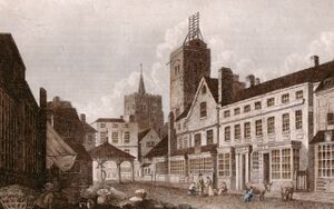 A street market on Wednesdays and Saturdays, founded by Abbot Ulsinus, still flourishes.[14] In 1553, Henry's son Edward VI sold the right to hold the market to a group of local merchants and landowners via letters patent which also incorporated St Albans as a borough.[18] The old market hall, which dated from around 1596, was replaced by the Corn Exchange in 1857.[19]
