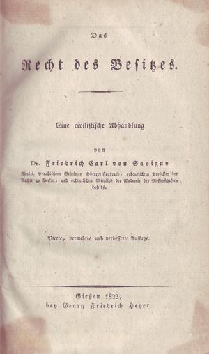 (help)- Friedrich Karl von Savigny, UXL Encyclopedia of World Biography (2003)