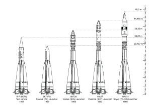 Korolev's design bureau produced two prospectuses for circumlunar spaceflight (March 1962 and May 1963), the main spacecraft for which were early versions of his Soyuz design. Soviet Communist Party Central Committee Command 655-268 officially established two secret, competing crewed programs for circumlunar flights and lunar landings, on August 3, 1964. The circumlunar flights were planned to occur in 1967, and the landings to start in 1968.[7]