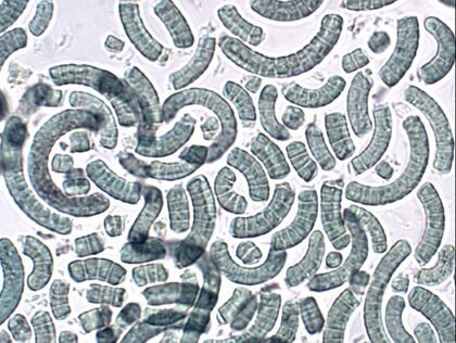 Arthospira species are free-floating, filamentous cyanobacteria characterized by cylindrical, multicellular trichomes in an open left-handed helix. They occur naturally in tropical and subtropical lakes with high pH and high concentrations of carbonate and bicarbonate.[3] A. platensis occurs in Africa, Asia, and South America, whereas A. maxima is confined to Central America.[2] Most cultivated spirulina is produced in open-channel raceway ponds, with paddle wheels used to agitate the water.[3]