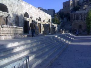 وبما أن الساحة العامة كانت تحتل الساحة الواقعة من الناحية الشمالية للمدرج الروماني، فقد كان هناك مقابل الساحة الهامة درجاً عريضاً يتسلق سفح جبل القلعة حتى يصل إلى معبد هرقل. كان هذا الدرج يبدأ من بوابة تماثل البوابة الموجودة في جرش؛ وكان الرحالة الأجانب قد شاهدوا بقاياها سنة 1911م، وكانت تعتبر هذه البوابة آنذاك بفتحاتها الثلاث من أجمل عمائر مدينة فيلادلفيا.