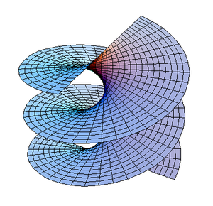 مقطع في an hyperboloid of one sheet (مثال لسطح مسطر) تغطيه فئة من الأسلاك المستقيمة. من أي نقطة على السطح يمكن رسم خطين مستقيمين يقعان بالكامل في السطح.