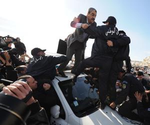 سعيد سعدي فوق سيارة شرطة لالقاء خطابه
