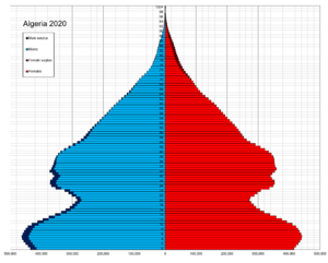 ![]() الهرم السكاني للجزائر عام 2020. | |
