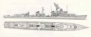 | الازاحة: | 2،316 long ton (2،353 t) standard, 3،066 long ton (3،115 t) full load |