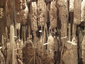 Dry fermented sausage ('salami aeros') is an important product of the Greek meat industry with an annual production of about 10,000 tons.[32] Its manufacture varies depending on the skill and experience of the meat manufacturer rather than a process solely based on scientific and technological means of production.[32] This type of traditional sausage, which undergoes spontaneous fermentation, is of superior quality compared to those inoculated with starters and made at industrial scale.[32] This type of traditional salami is often more expensive due to its high quality.