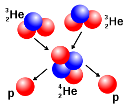- 3He2+ +3He2+ → 4He2+ + 1H+ + 1H+ + 12,86 MeV
