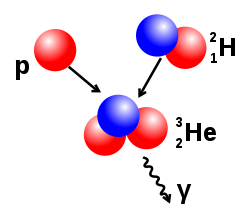 - 2H+ + 1H+ → 3He2+ + γ + 5,49 MeV