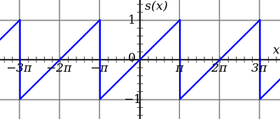 , تتقارب متسلسلة فورييه إلى 0, وهو نصف مجموع الحد الأيمن والأيسر لـ s عند