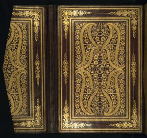 غلاف كتاب يحوى على أعمال فنية فارسية، بعضها للمشهدي - متحف والترز.