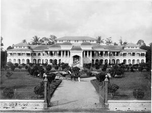 At this time, Sultan Mahmud Al Rashid Perkasa Alam Shah built a symbol of the triumph of the Sultanate of Deli, among others, Kampong Bahari (Labuhan) in 1886 and the Maimoon Grand Palace in 1888 (Sinar, 2007:100). His successor, Sultan Ma`mun Al Rashid Perkasa Alam Shah, who reigned since 1873, continued the development of the symbols of greatness by founding the building of Mahkamah Kerapatan Besar in 1903 and the Great Mosque of Sultan Al Mansun in 1906. Maimoon Palace was built in what is now the centre of Medan City administration and inhabited by the sultans of Deli and their families since 18 May 1891. Earlier, the sultans and his family lived in Kampong Bahari in Labuhan. The architect of this palace was a KNIL soldier (Koninklijk Nederlandsche Indische Leger, Dutch East Indies colonial army) named Captain Theodoor van Erp.[14]