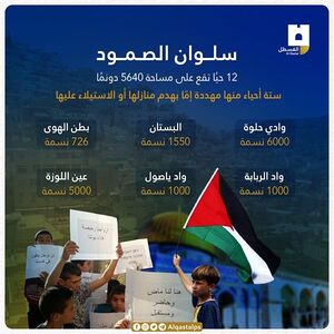 52. ^ "تسارع الاستيطان في القدس: التهويد «ينهش» سلوان". جريدة الأخبار اللبنانية. 2019-07-11. {{cite web}}: Unknown parameter |1accessdate= ignored (help)
