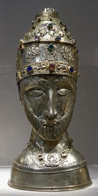 جصية من القرن 13 للپاپا سلڤستر الأول وقسطنطين الأول، تصوّر الهبة القسطنطينية المزعومة. سانتي كواترو كوروناتي، روما.