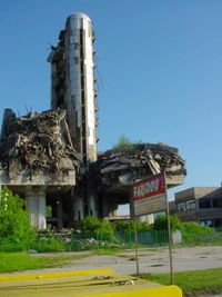 المبنى السابق لجريدة بسراييڤو، وقد عاشت سونتاگ في سراييڤو بضعة أشهر أثناء الحصار، مخرجةً انتاج لمسرحية في انتظار گودو في مسرح سراييڤو المضاع بالشموع.