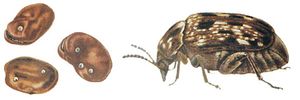 كما تصاب الأخشاب والأثاث الخشبي بالتسوس (ظهور آثار ثقوب دقيقة يصاحبها نشارة خشبية ناعمة) نتيجة إصابتها بخنافس فصيلتي Anobiidae وLyctidae التي تتصف بصغر حجمها وعدم وجود الخرطوم. وهي تعيش في أنفاق داخل الخشب حيث تضع بيضها وتعيش يرقاتها وتوجد عذاراها. تعالج الأخشاب المصابة بالتسوس باستخدام المواد الكيميائية الحافظة وبمعالجتها بالحرارة الرطبة أو الجافة.[1]