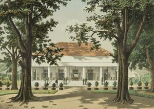 After emerging victorious from the Diponegoro War in Java, the Dutch then tried to conquer the Padri with shipments of soldiers from Java, Madura, Celebes and the Moluccas.[40] But the Dutch colonial ambitions caused the Adat and the Padri to forget their differences in secret to drive the Dutch away. On 2 May 1833 Sultan Tangkal Alam Bagagar was captured by Lieutenant Colonel Elout in Batusangkar on charges of treason. He was exiled to Batavia (present-day Jakarta) until his death, and was buried in the Mangga Dua cemetery.[41] After the fall, the influence and prestige of the kingdom of Pagaruyung remained high, especially among Minangkabau people who were overseas. One of Pagaruyung's royal heirs was invited to become a ruler in Kuantan, Malaysia.[42] Likewise when Raffles was still on duty in the Malay Peninsula, he met Pagaruyung's relatives who were in Negeri Sembilan, and Raffles intended to appoint Yang Dipertuan Ali Alamsyah who he considered to be the direct descendant of the Minangkabau kings as a king under British protection.[29] After the end of the Padri War, Tuan Gadang of Batipuh asked the Dutch East Indies government to give a higher position than just as the Tanah Datar Regent which he held after replacing Sultan Tangkal Alam Bagagar, but this request was rejected by the Dutch, this later included one of the drivers of the outbreak of the 1841 rebellion in Batipuh in addition to the cultuurstelsel problem.[43][27]