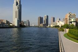 منظر لنهر سوميدا من على أحد الجسور في طوكيو.