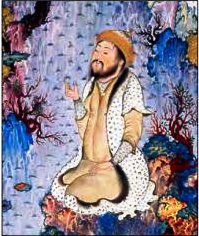 Ferdowsi's great epic poem begins with the story of Keyumars, the first king to arise among humans, who at that time lived in mountain caves and wore the skins of leopards. God (Ahura Mazda) granted him the supernatural radiance called farr (Avestan xvarənah) reserved to kings. His son was Siāmak was beloved of all except the devil Ahriman, who raised an army under the command of his own demonic son. When the angel Sorush (Avestan language: Sraoša) warned Keyumars, Siāmak led an army of his own. Siāmak accepted a challenge to single combat and died at the hands of the demon.