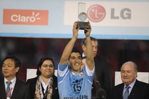بلاتر (يمين) ولويس سواريز، لاعب بطولة كاس أمريكا 2011.
