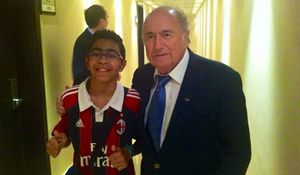 بلاتر مع مشجع في بطولة كأس العالم لكرة القدم تحت 17 سنة 2013.