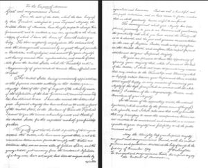 رسالة جورج واشنطن إلى محمد بن عبد الله تقديراً لمعاهدة السلام والصداقة، الموقعة في مراكش في 1787.