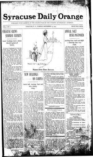 On March 24, 1870, Syracuse University was founded. The State of New York granted the new university its own charter, independent of Genesee College, which had unsuccessfully tried to move to Syracuse the year before.[13] The university was founded as coeducational. President Peck stated at the opening ceremonies, "The conditions of admission shall be equal to all persons... there shall be no invidious discrimination here against woman.... brains and heart shall have a fair chance... "[14] Syracuse implemented this policy and attracted a high proportion of women students. In the College of Liberal Arts, the ratio between male and female students during the 19th century was approximately even. The College of Fine Arts was predominantly female, and a low ratio of women enrolled in the College of Medicine and the College of Law.[14]