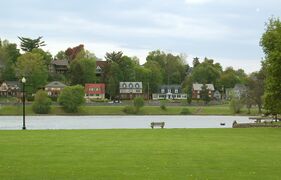 Syracuse's main water source is Skaneateles Lake, one of the country's cleanest lakes,[20] located 15 mi (24 km) southwest of the city. Water from nearby Onondaga Lake is not potable due to industrial dumping that spanned many decades, leaving the lake heavily polluted.[21] Incoming water is left unfiltered,[22] and chlorine is added to prevent bacterial growth. Most of the environmental work to achieve lake cleanup was scheduled to be completed by 2016; however Honeywell, the company tasked with the cleanup, announced the project's completion in late 2017.[23][24] For periods of drought, there is also a backup line which uses water from Lake Ontario.[25]