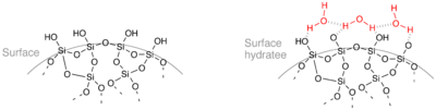 تكون غير ذوابة عملياً في الماء والمذيبات العضوية والحمض باستثناء hydrofluoric acid . ذوابة في المحاليل الساخنة للهيدروكسيدات القلوية . يشكل مبعثرات غروانية مع الماء ، وبالنسبة للآيروزيل : 150 mg/L at 25C (pH 7)